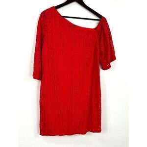 Laundry by Shelli Segal Womens Size M Red Lace Shift Dress Cocktail Evening E4