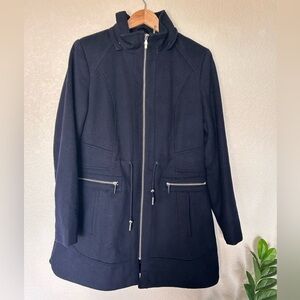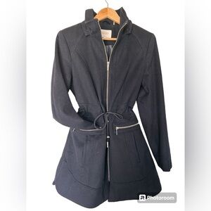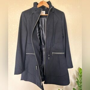 Gorgeous, pre loved wool blend coat. Zip front and zip pockets. * Price accounts for missing hood* Gorgeous coat without the hood too.