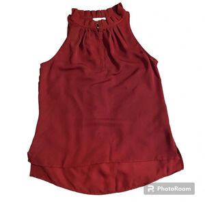 Laundry by Shelli Segal XS Maroon Sleeveless Ruffled Mock Neck Blouse Tank Top