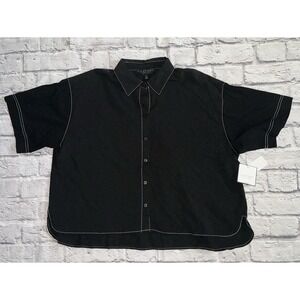 Laundry by Shelli Segal button down top women M cropped length Black NWT