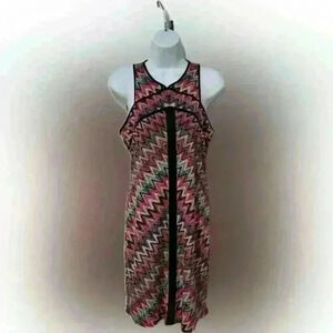 Laundry by Shelli Segal dress “miss only me” chevron nautilus pink teal black size 4. Zipper back fully lined