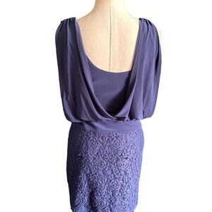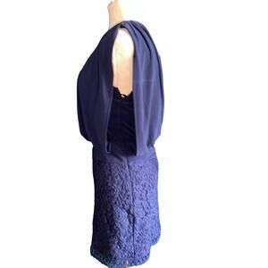 Laundry by Shelli Segal lace embroidered dress Navy Lace w/Chiffon Capelet sz 2