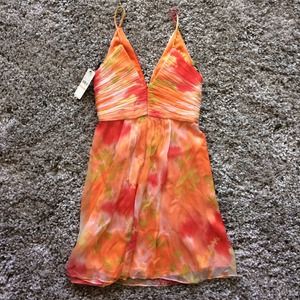 New with Tags Laundry by Shelli Segal orange floral dress. Knee- length and plunge neckline. 100% silk, dry clean only. Size 2. True to size.