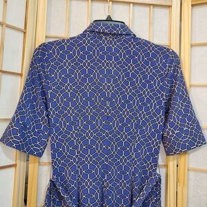 This is a Womens Laundry By Shelli Segal ruched button front waist tie dress size 2P. The dress measures 16 inches armpit to armpit, from top of the collar to the hem 36 inches and short sleeves with vents. 5% spandex