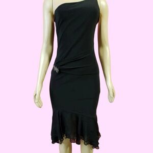 Laundry by shelli segal LBD one shoulder gathered black dress size 6 new vintage