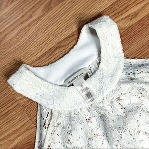 This Laundry by Design lace dress is so cute and ready to find a new home 🏠 It is in great used condition, with one small flaw. The flaw is pictured — it is a tiny stain on the inside of the collar, no one can see it when wearing.