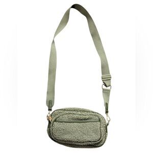 Laundry by Shelli Segal Green Sherpa Crossbody Bag, Front & Back Outside Slip Pockets, Two Compartments, One with a large slip pocket & one large zipper pocket, The other compartment has a credit card & ID Holder, Like new, No flaws