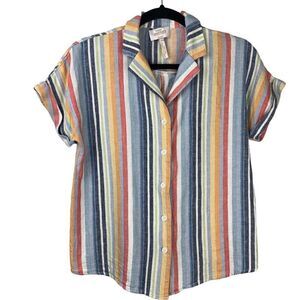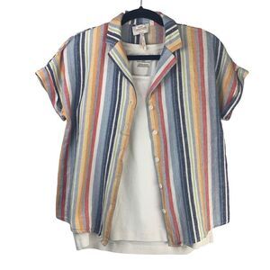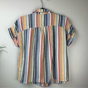 Laundry by Shelli Segal Rainbow Stripe Linen Blend Button Down Top
