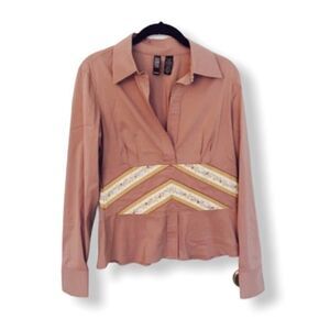 Laundry by Shelli Segal pink collared shirt with detailing on waist and side zipper closure