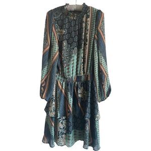 Laundry by Shelli Segal Women's Long Sleeve High Neck Mini Dress with Tiered Ski