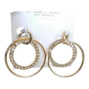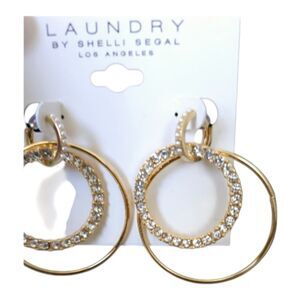 NWOT Laundry By Shelli Segal Gold Rhinestone Earrings NWT. Double circle, Gold with Rhinestone accents