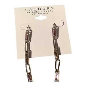 NWT Laundry by Shelli Segal Earrings, Pink Crystal 3.5” Dangle