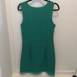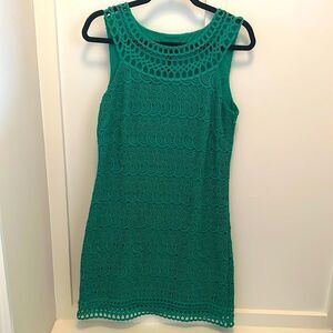 Laundry by Shelli Segel Green Dress Scalloped Crochet Sleeveless Sheath Mini