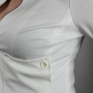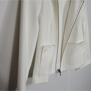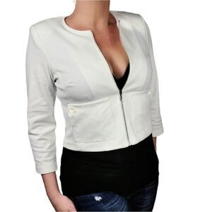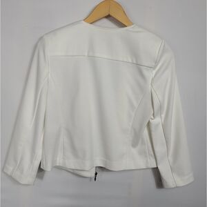Laundry by Shelli Segal jacket. Zip it up for a polished feel, and unzip it for a more casual vibe • Round neckline; front zip • Three-quarter sleeves • Front button pockets • Cropped at hip • Polyester/rayon/spandex