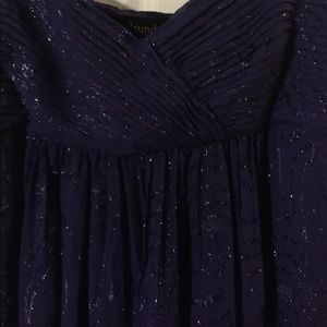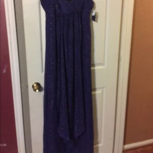 Strapless navy with shiny design in size 8, formal long gown, new with tags, designer laundry by Shelli Segal Los Angeles, extra baggie with navy spaghetti straps, fully lined with boning, 100% polyester, side zipper