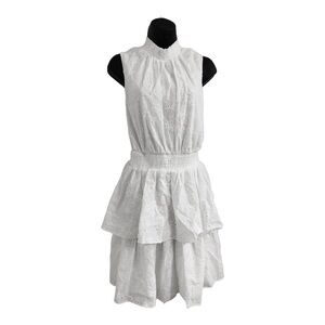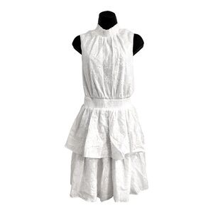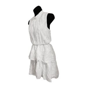 Laundry white eyelet elastic waist layered tiered neck tie sleeveless dress size 8