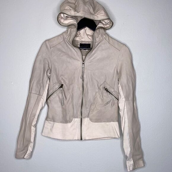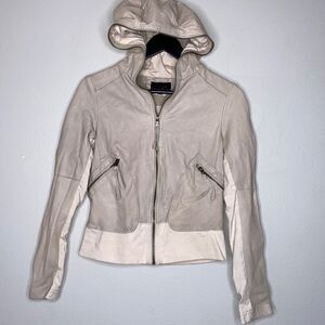Laundry By Shelli Segal Leather Full Zip Jacket Coat Biege Tan Cream woman’s S
