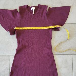 Knitted dress runs small. The sleeves are lowered. The color is dark purple.