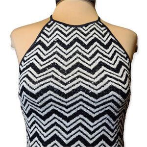 Laundry Shelli Segal Black and White Sequined Halter Top, ties in back, zig zag pattern. Great for a night out, party, club.