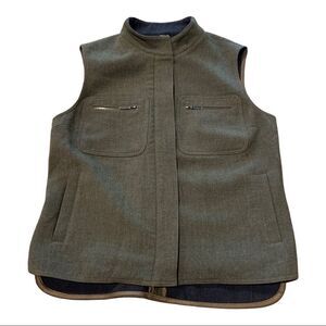 Laundry by Shelli Segal Vest Olive Green Mandarin Collar Zipper Velcro Closure Stretch Size 6