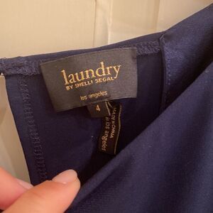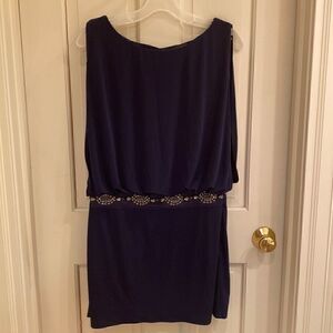 Laundry by Shelli Segal cocktail dress size 4. Draped sleeves and jeweled waist. Rich navy color. Back accent. No signs of wear. Bought for $250. Smoke/pet free home.