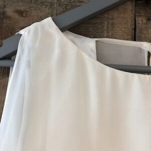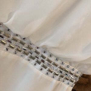 Gorgeous white, roman-style dress by Laundry. Sleeveless with sheer overlay and a jeweled waistline. Stunning!!! Mini.