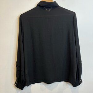 Laura #101300 Button Detail Long Sleeve Blouse Black