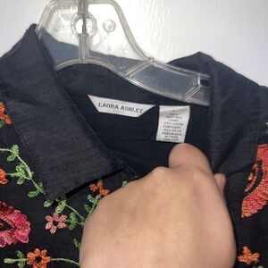 Elevate your wardrobe with this stunning Laura Ashley button-up blouse. Made with 100% silk and beautifully embroidered accents, this multicolor floral top is sure to turn heads.