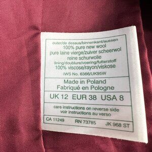 Laura Ashley 100% Wool Burgundy Tan Plaid Double Breasted Blazer Size 8 Preppy Academia Vintage Old Money Quiet Luxury Holidays Christmas