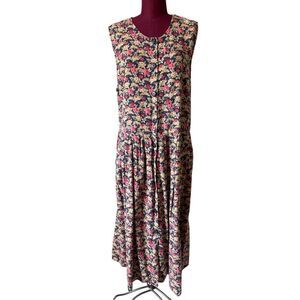 Laura Ashley 1980S FLORAL BUTTON DOWN SLEEVELESS DRESS size 10 Sleeveless