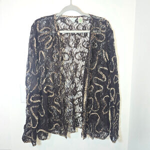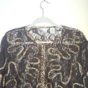Laura Ashley 2X Vintage Floral Lace Embroidered Jacket Romantic Brown Boho