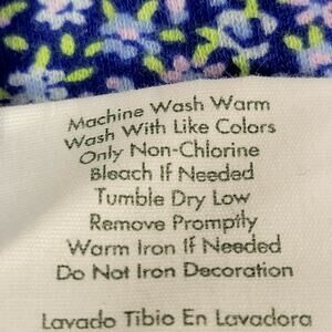 Floral print on the rest of dress in navy blue, light blue, purple, and green.