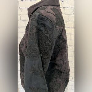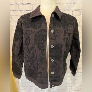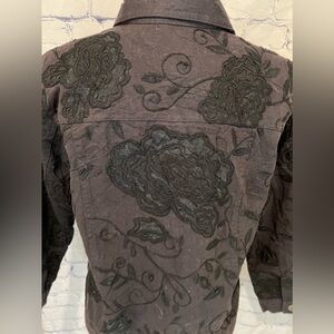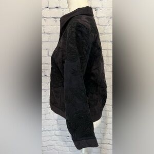 Laura Ashley Black Jean Denim Beaded Embroidered Jacket Cotton Size PM