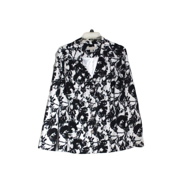 Laura Ashley Blazer Jacket Black and White Button Front Size 2X