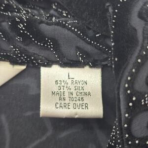 Laura Ashley Blouse Womens Large Black Sheer Velvet Burnout Button Up Long Sleeve Top