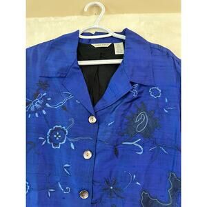 Laura Ashley Blue Geometric Floral Button Down Silk Top XL