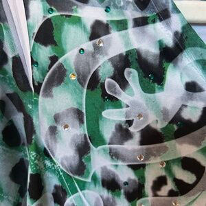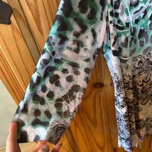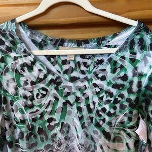 Women's Larua Ashley Bora Bora printed sequin tunic top, v-neck, 3/4 sleeves, green multi color, size large