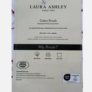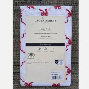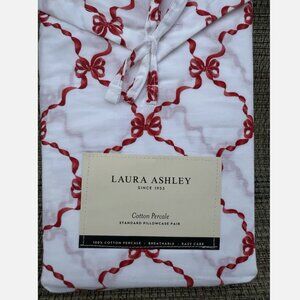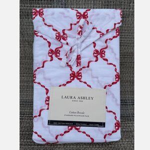 Laura Ashley Bow Ribbon Red Cotton Percale STANDARD Pillowcase Set 2pc