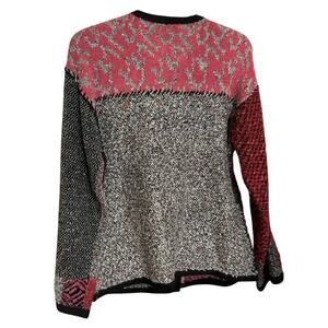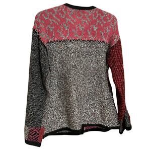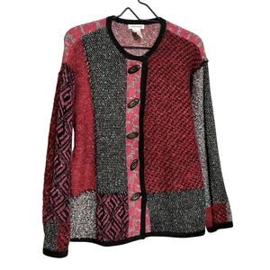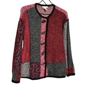 Laura Ashley Cardigan M Patchwork Exposed Stitch Marled Fleece VTG 90s Y2K EUC