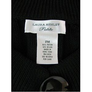 Laura Ashley Cardigan Sweater Size Petite Medium Daisy Fields Black Wide Ribbed