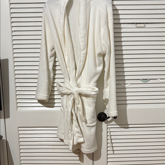 Soft and cozy cream robe. Perfect for lounging. Features a tie belt.