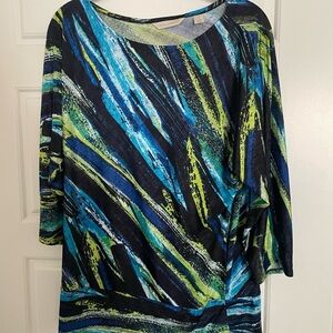 Laura Ashley Top Blue Green Abstract Diagonal Striped Boat Neck for adding a pop of color to any outfit. 3/4 sleeves. Made of 95% polyester, 5% spandex.
