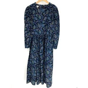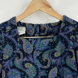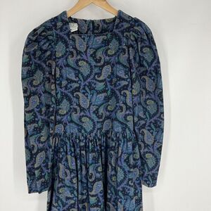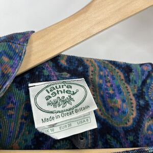 Laura Ashley Dress Size 8 Womens Navy Green Paisley Print Corduroy Great Britain