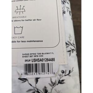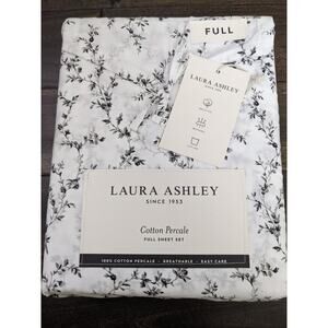 Laura Ashley Full Sheet Set “Sara’s Sprig” 4pc Cottage White Black