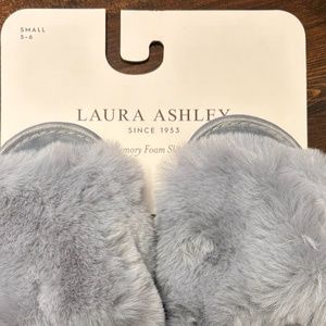 Laura Ashley Fuzzy Slippers, Open Toe, Gray, Memory Foam, Size 5-6 (Small)