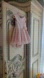 This sweet, classic dress has an antique flavor with its soft pink color and soft contrasting lace overlay. At the skirt is lower in the back than the front, adding a hint of modern to this otherwise classic dress.
