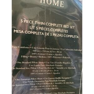 Laura Ashley Home Lindy 5-Piece Green Floral Cotton Twin 2-Sided Comforter Set. This elegant Laura Ashley Home 5-Piece Twin Comforter Set includes a comforter, one standard sham, one Euro sham, and two decorative pillows. The timeless green floral design on a fresh white background adds a fresh, sophisticated look to any bedroom. Easy care elements. Great for a guest room Teens room.