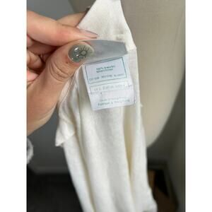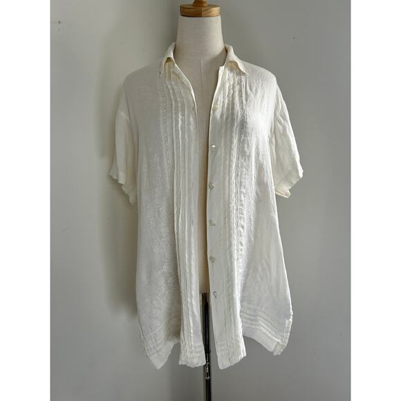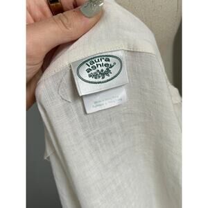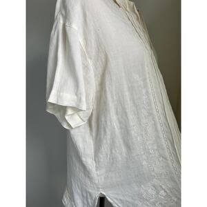 Laura Ashley Ivory Floral Stitch Short Sleeve Button Blouse Shirt 100% Linen, 4