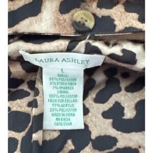 Laura Ashley Jacket/Coat Beige Leopard Print L Lining Removable Faux Fur Collar