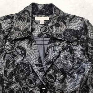 Laura Ashley L Blazer Silver With Black Lace Overlay Jacket Whimsigoth Career